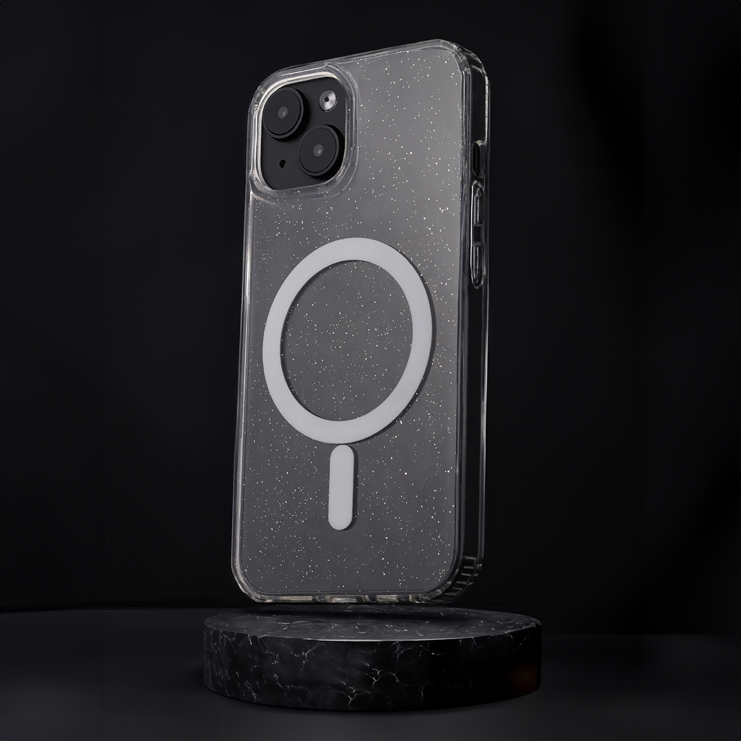 Nakładka Shine Mag wykonana jest z połączenia miękkiego tworzywa TPU po bokach oraz twardego materiału PC na pleckach, tworząc idealną ochronę dla smartfona. Ta przezroczysta nakładka z dodatkiem brokatu podkreśla oryginalny design urządzenia, dodając mu elegancji i blasku.